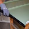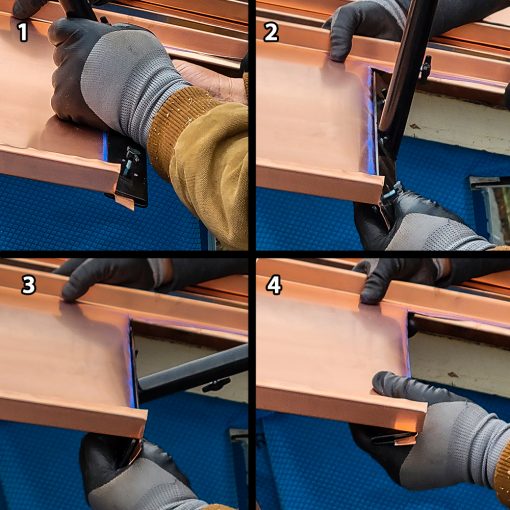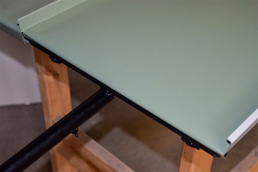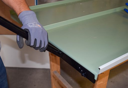 - Slide folding bar over end of panel and pull back on handle to create the drip edge hem